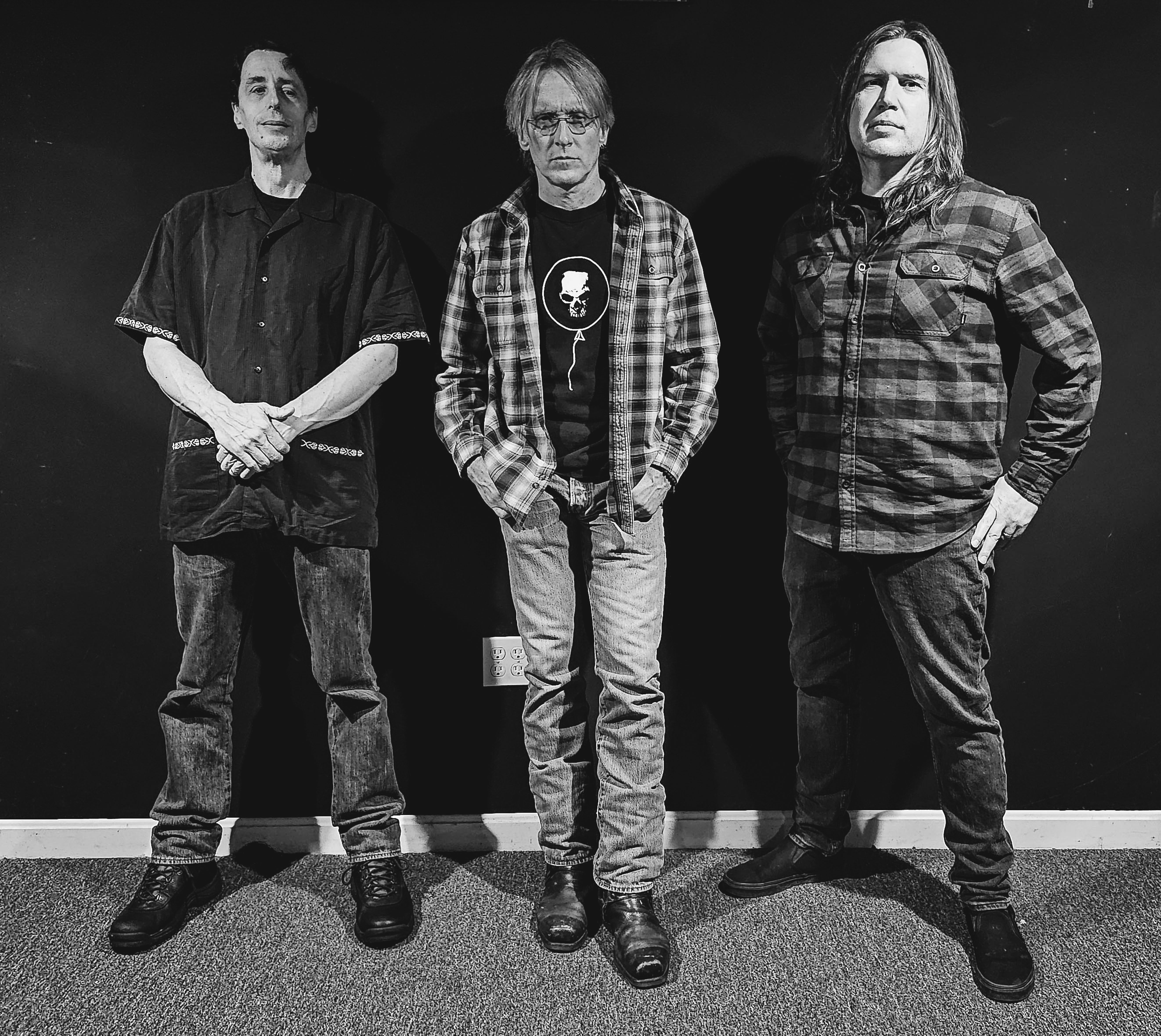 High resolution .png file of the band inside backstage, black and white.
